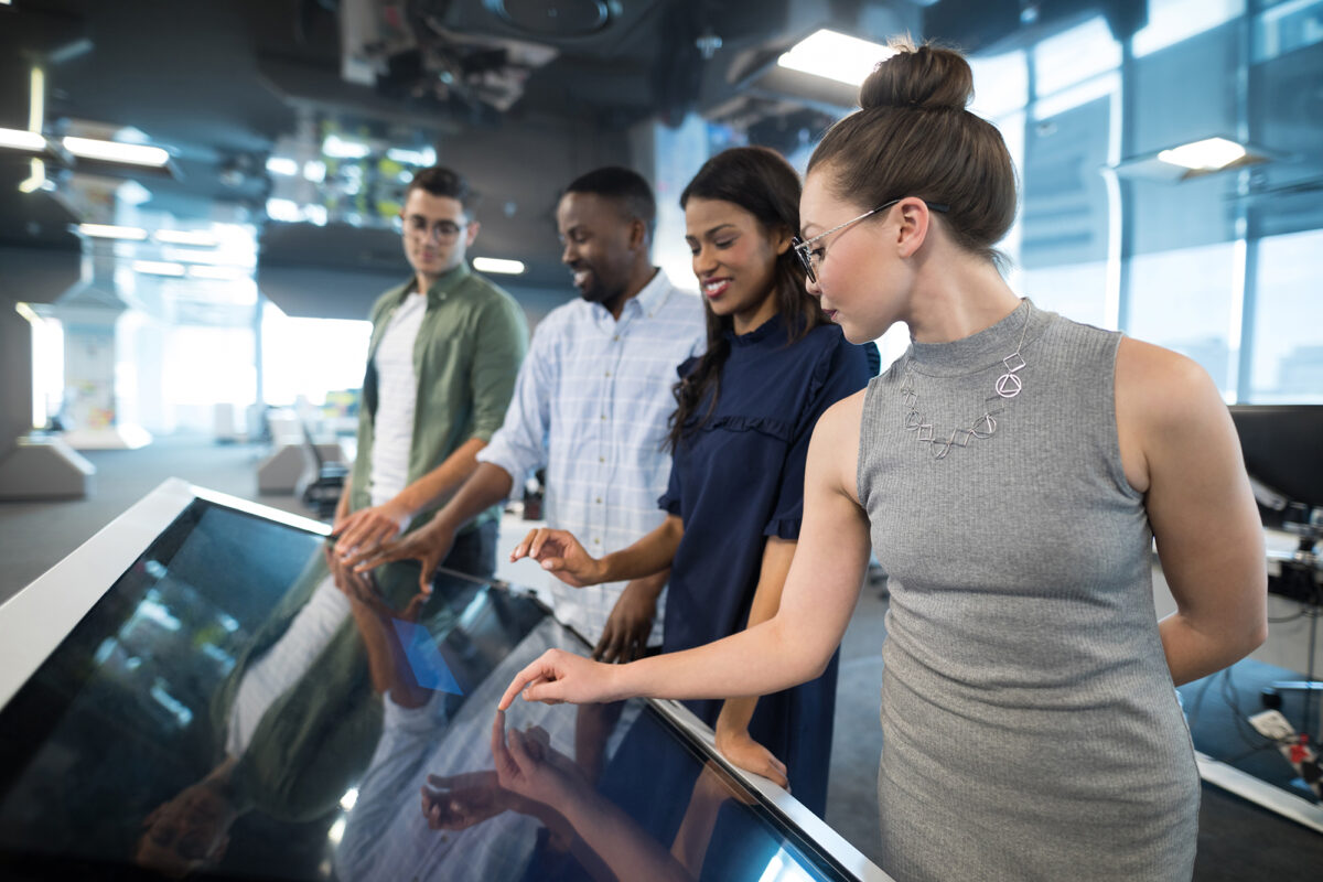 In high-traffic environments, digital signage serves as a beacon for interaction: